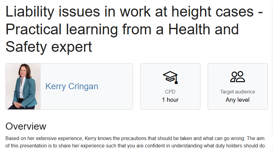 Kerry Cringan is hosting a webinar on work at height cases for APIL on Tuesday 9 December 2025. Further details on the webinar can be found here.